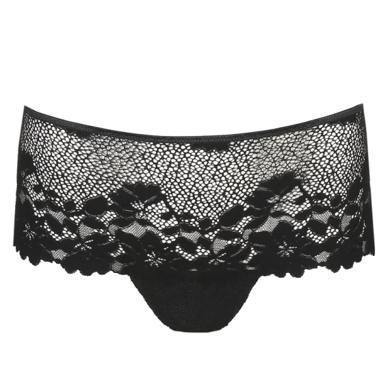Die Abbey Road Hotpants von PrimaDonna Twist ist in der Farbe Golden Fever erhältlich. Diese eleganten schwarzen Hotpants sind aus wunderschöner floraler Spitze gefertigt. Die Hotpants ist transparent und hat hinten ein kleines Dreieck aus glänzendem Satinstoff. Die Hotpants sitzt hoch auf den Hüften und bedeckt teilweise das Gesäß.
