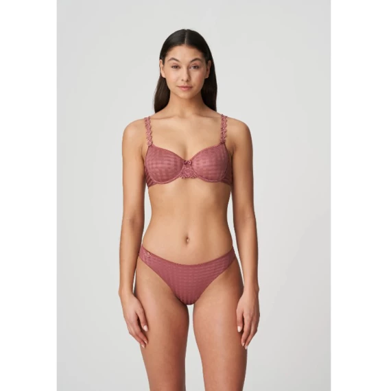 Der Avero Rio Slip von Marie Jo ist in der Farbe Wild Ginger erhältlich. Dieser rosafarbenen Slips ist ein guter Kompromiss zwischen Eleganz und Komfort. Da der Slip an den Seiten recht hoch geschnitten ist, wirken Ihre Beine länger. Der Slip ist mit süßen Blümchen auf der Vorderseite versehen!
