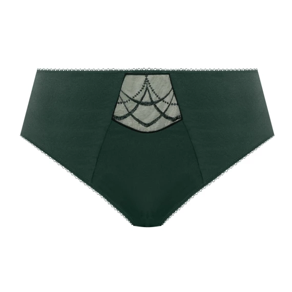 Der Cate hohe Slip von Elomi ist in der Farbe Pine Grove erhältlich. Dieser elegante Slip hat in der Mitte das gleiche Stickereimuster wie der passende Bügel-BH. Der Rest des Slips ist einfarbig grün. Am Bündchen befindet sich eine kleine Schleife, die den Slip vervollständigt! Kombinieren Sie diesen Slip mit dem Bügel BH Cate!
