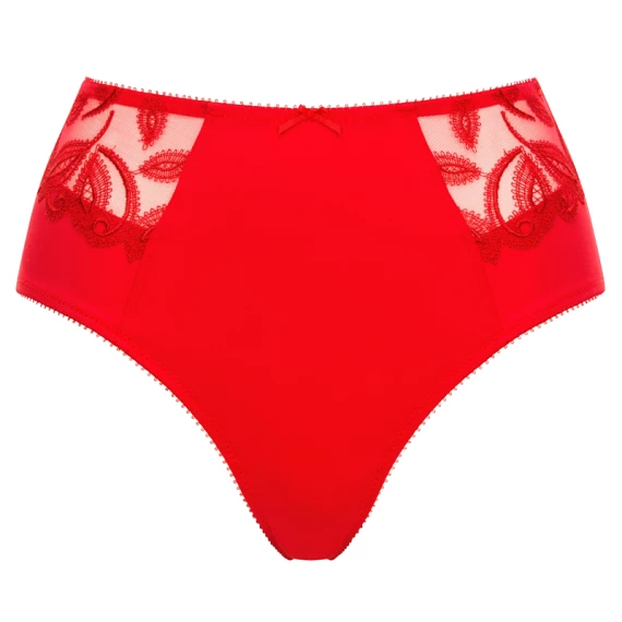 Der Choice Taillenslip von Felina ist in der Farbe Amarena erhältlich. Dieser rote Highwaisted-Slip hat einen schönen halbtransparenten Stoff auf der Vorderseite. Die Slips sind ideal, um einen möglichen Bauch lzu kaschieren. Das liegt daran, dass die Slips sehr hoch geschnitten sind. Kombinieren Sie mit dem Bügel BH Choice!