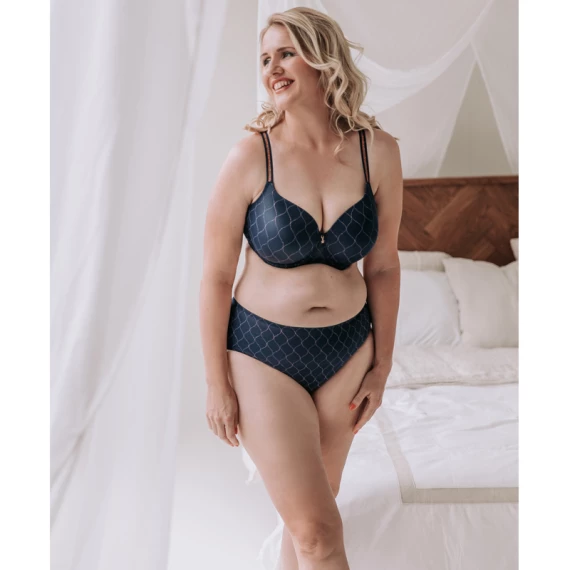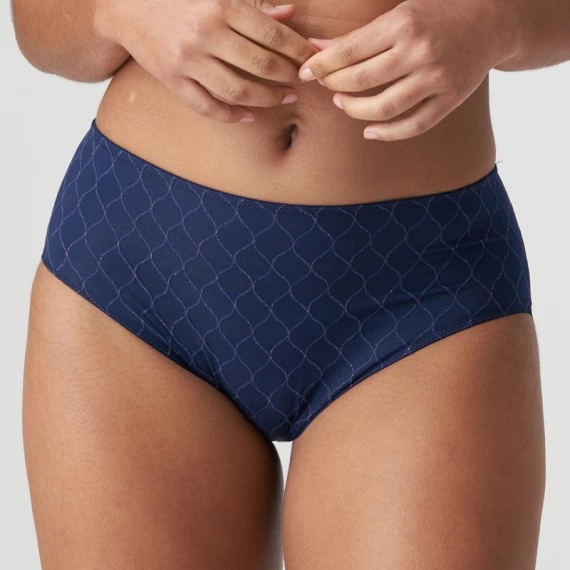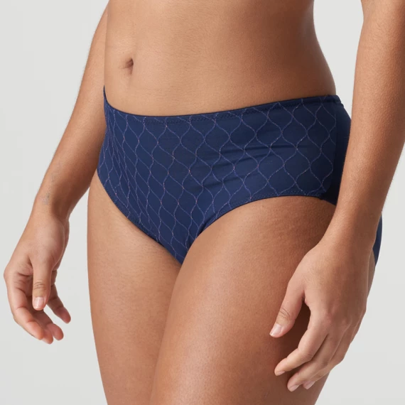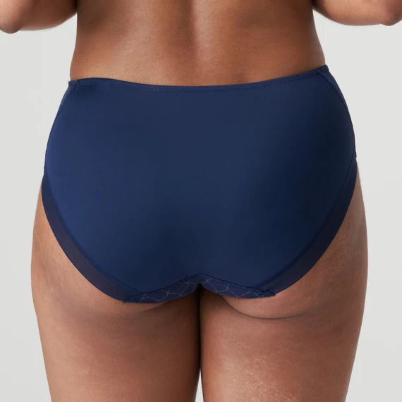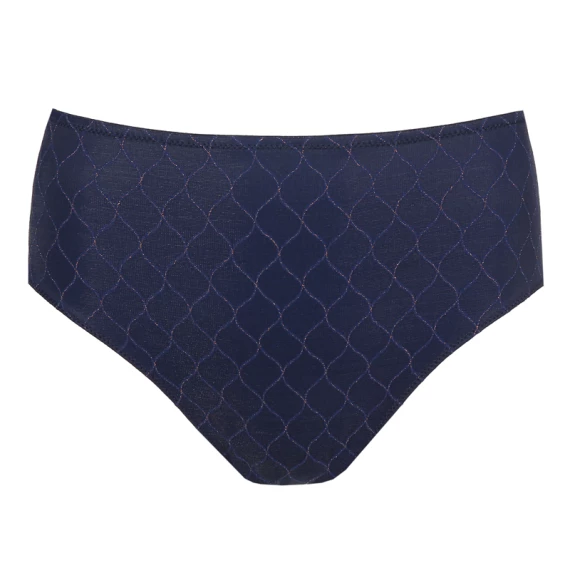 Der Chryso Taillenslip von PrimaDonna Twist ist in der Farbe Sapphire Blue erhältlich. Dieser dunkelblaue Slip ist mit feinem Tüll überzogen und mit roségoldenen Akzenten verziert. Die halbtransparente Tüllkante am Rücken sorgt für einen sexy Effekt. Der Slip ist an der Taille etwas höher geschnitten, damit der Bauch schön eingepackt ist. Kombinieren Sie diesen Slip mit einem der BHs aus der Chryso Kollektion. Nachtblau mit roségoldenem Akzent: Minimalismus mit einem Hauch von Glamour!
