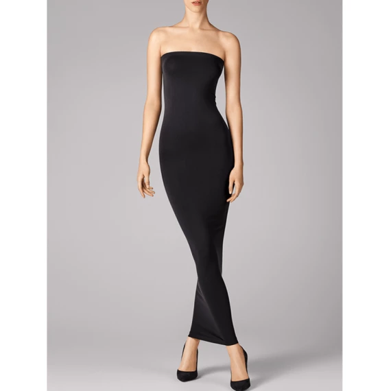 Das Fatal Kleid von Wolford in der Farbe Schwarz. Dieses KLeid ist aus sehr weichem, bequemen Stoff. Das Kleid fühlt sich wie eine zweite Haut an, zeichnet nicht ab und formt den ganzen Körper leicht. Die Länge de Kleides kann zum Rock oder Oberteil geformt werden. Komfort für jede Frau, auch für Schwangere geeignet.
