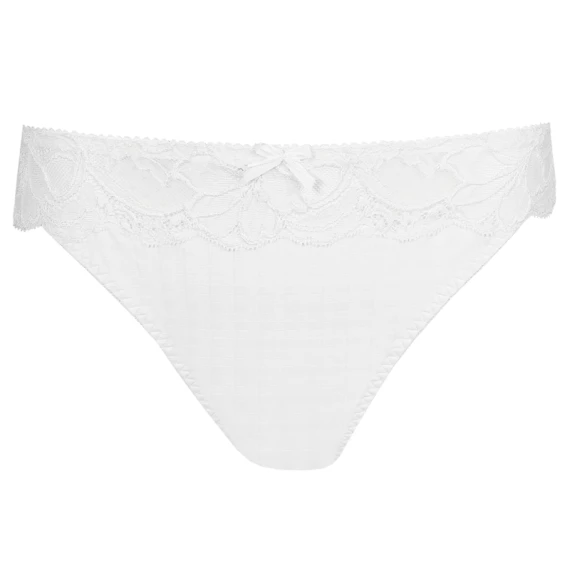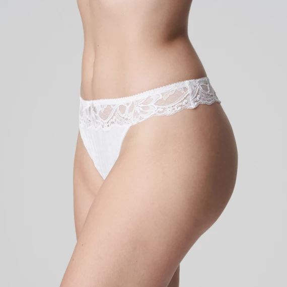 Der String Madison von PrimaDonna Dessous in Weiß ist an den Seiten recht hoch geschnitten und lässt Ihre Beine länger erscheinen. Der String ist aus dem gleichen Karostoff wie die BHs gefertigt und wird an den Seiten mit Spitze abgeschlossen. Die Madison Serie ist bei den PrimaDonna Fans sehr beliebt. Die Kombination aus Karos und Spitze verleiht dieser Serie einen jungen und eleganten Look.
