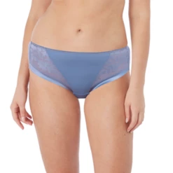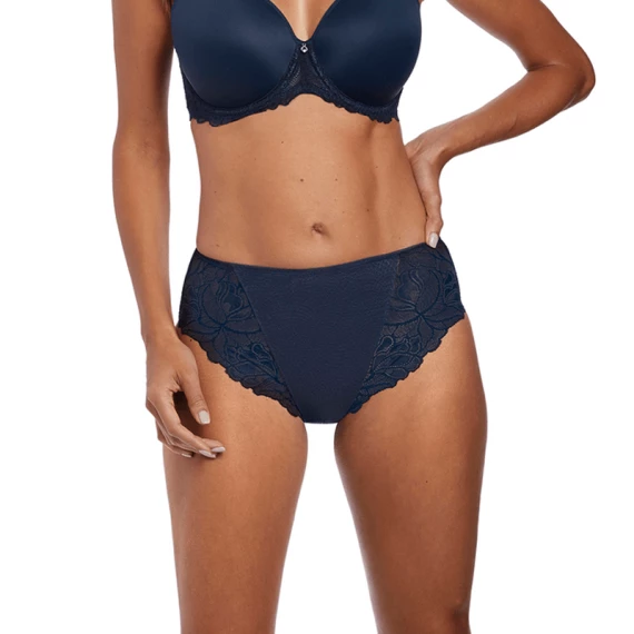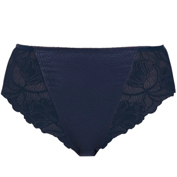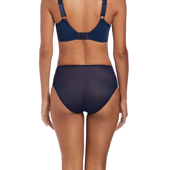 Der Memoir Slip von Fantasie in der Farbe Navy. Dieser blaue Slip ist auf der Vor- und Rückseite mit Mesh-stoff gearbeitet. Die Seiten des Slips sind aus prachtvoller Spitze. Kombinieren Sie diesen schönen, sexy Slips mit einem der Memoir BHs.