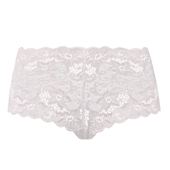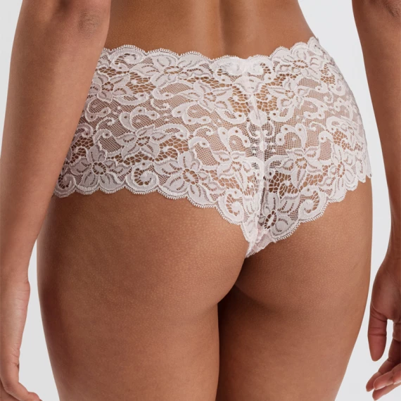 Die Moments Shorts von Hanro ist in der Farbe Gentle Pink erhältlich. Diese hellrosa Shorts sind komplett aus luxuriöser französischer Spitze im Blumenmuster gefertigt. Das elastische Bündchen sorgt für zusätzlichen Komfort. Kombinieren Sie diese Shorts mit dem Moments Soft-Cup-BH.