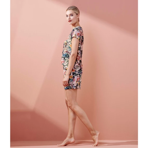 Das Saona Famke Pyjama Shirt von Essenza ist in der Farbe Rose erhältlich. Dieses stilvolle Pyjama Shirt hat einen schönes romantisches Blumen Muster. Die Inspiration für diese eleganten Blumen wurde in den schönen Stillleben der niederländischen Meister gefunden. Das kurzärmelige Oberteil besteht aus EcoVero, einer umweltfreundlichen Alternative zu Viskose, die aus Holz aus erneuerbaren und zertifizierten Wäldern in Europa hergestellt wird. Komfortabel und nachhaltig! Der Stoff ist herrlich leicht, fühlt sich seidig weich an und hat einen leichten Glanz. Verwöhnen Sie sich und Ihre Umgebung mit einem Meer von Blumen!