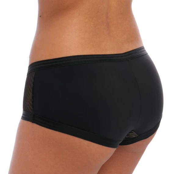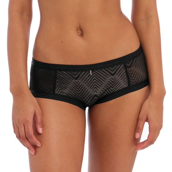 Die Tailored Short von Freya ist in der Farbe Schwarz erhältlich. Diese eleganten Shorts sind halbtransparent und haben einen gestreiften Print, die Rückseite der Shorts ist einfarbig schwarz. Der elastische Bund verleiht den Shorts einen sportlichen Look. Vervollständigen Sie den Look mit einem der passenden BHs aus der Tailored Kollektion!