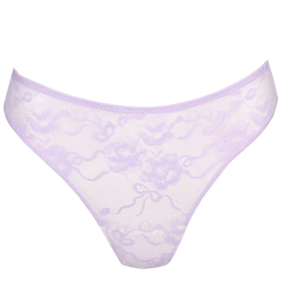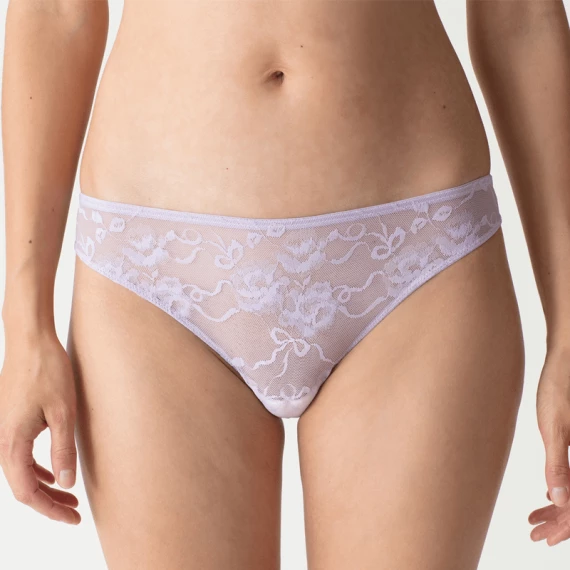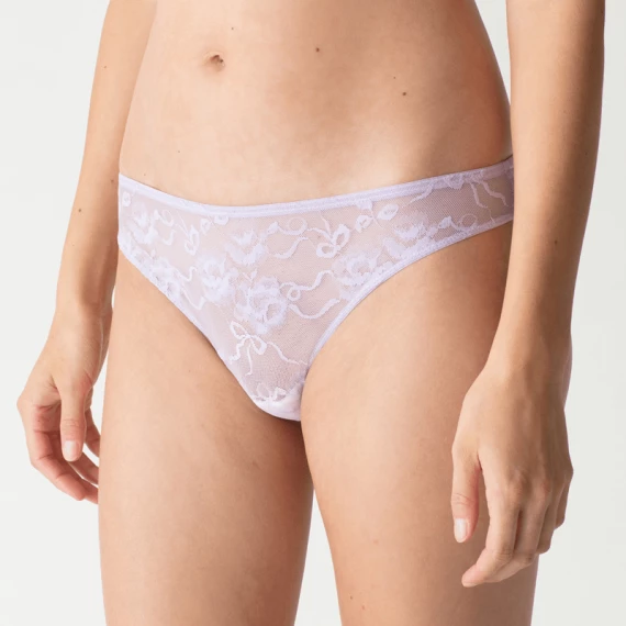 Der Take a Bow String von PrimaDonna Twist ist in der Farbe Pastell Lila erhältlich. Dieser fliederfarbene String ist auf der Vorder- und Rückseite mit einer schönen Blumenstickerei und Schleifen in Pastelltönen verziert. Der gesamte String ist transparent, wodurch ein verführerischer Effekt entsteht. Die Rückseite des Slips enthält ein romantisches Stück Spitze entlang der Beinausschnitte.