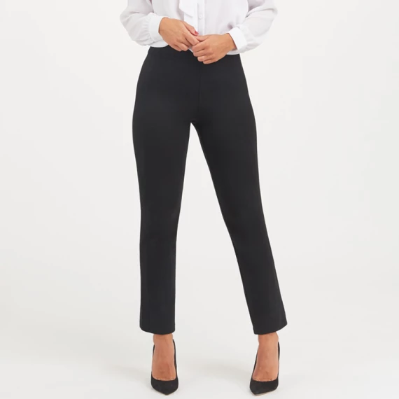 Die Perfect Straight Leg Pants von Spanx ist in der Farbe Schwarz erhältlich. Diese schwarze modische Hose ist Ihr neuer Favorit für jedes Outfit und jeden Anlass. Dank des festen, bequemen und dehnbaren Stoffes erhält diese Hose einen engen, geraden Beinlook. Die Hose hat eine integrierte Formgebung, die Bauch und Hüften schön schlank macht. Der hohe breite Bund ist doppellagig und korrigiert Bauch und Taille. Sie möchten diese Hose jeden Tag tragen, nicht wahr? Die perfekte Hose!
