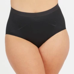 Der Thinstincts korrigierende Taillenslip von Spanx ist in der Farbe Schwarz erhältlich. Diese Slips sind aus atmungsaktivem, leichtem, dünnem und weichem Material gefertigt und sorgen für absoluten Komfort. Ein aufgedrucktes Formmuster ist an den richtigen Stellen sichtbar und sorgt für zusätzlichen Halt. Der Taillenslip gleicht Unebenheiten aus, strafft und festigt Bauch, Taille und Hüften. Diese nahtlosen Slips sind perfekt, um sie unter jedem Outfit zu tragen!
