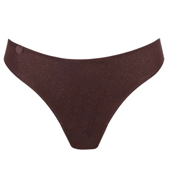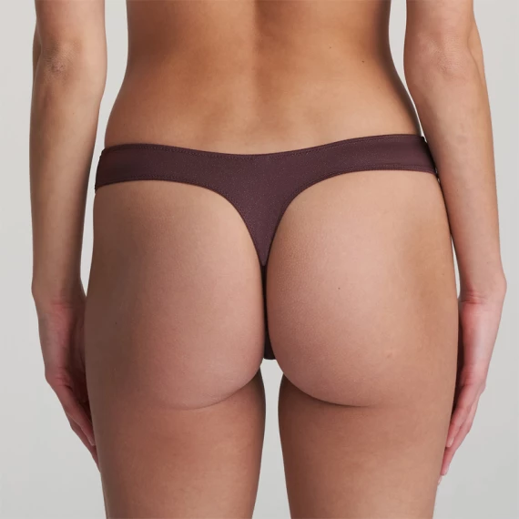 Der Tom String von Marie Jo L’Aventure ist in der Farbe Aubergine erhältlich. Dieser dunkelbraun-lilafarbene String in angesagter Tweed-Optik lässt Ihre Beine durch den höheren Beinausschnitt optisch länger wirken. Das Bündchen hat ein süßes rundes Detail. Vervollständigen Sie Ihr Set mit einem der passenden BHs aus der Tom-Kollektion.