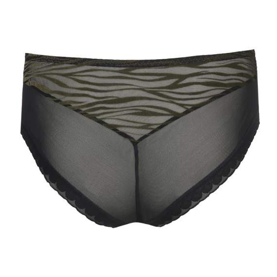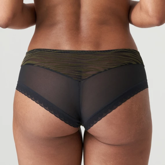 Die Verlet Hotpants von PrimaDonna Twist ist in der Farbe Dark Woods erhältlich. Dark Woods ist eine stilvolle Mischung aus Olivgrün, Dunkelgrau und einem Hauch von Kupferschimmer. Diese Hotpants sind aus elastischem Tüll mit einer von dunklen Wäldern inspirierten Samtoptik gefertigt. Die Hotpants sind am unteren Ende mit schwarzem Tüll verziert. Kombinieren Sie diesen Slip mit einem der BHs aus der Verlet Kollektion für einen kompletten Look.
